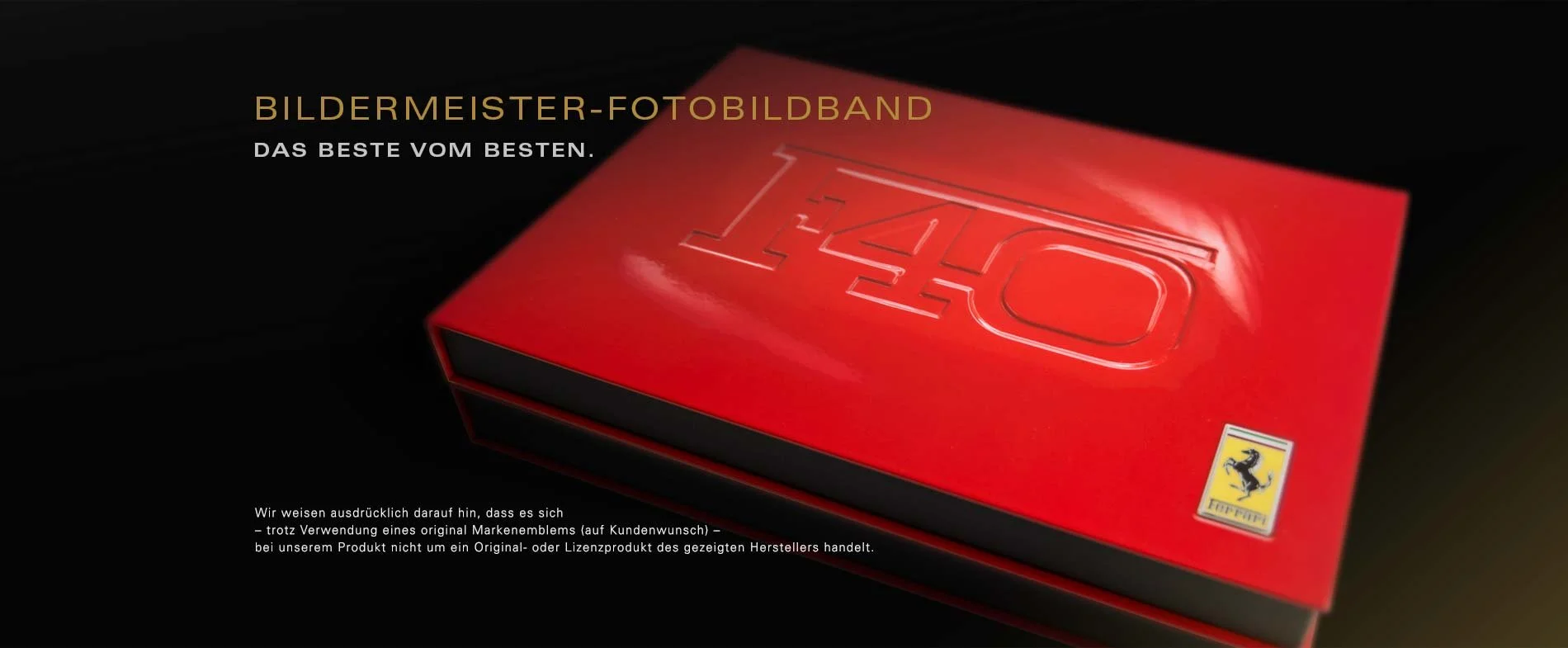 Das gibt es nur bei BILDERMEISTER: einen exklusiven XL-Fotobildband Ihres eigenen Automobils. Gehört zu jedem hochwertigen Automobil genauso wie der Fahrzeugbrief.